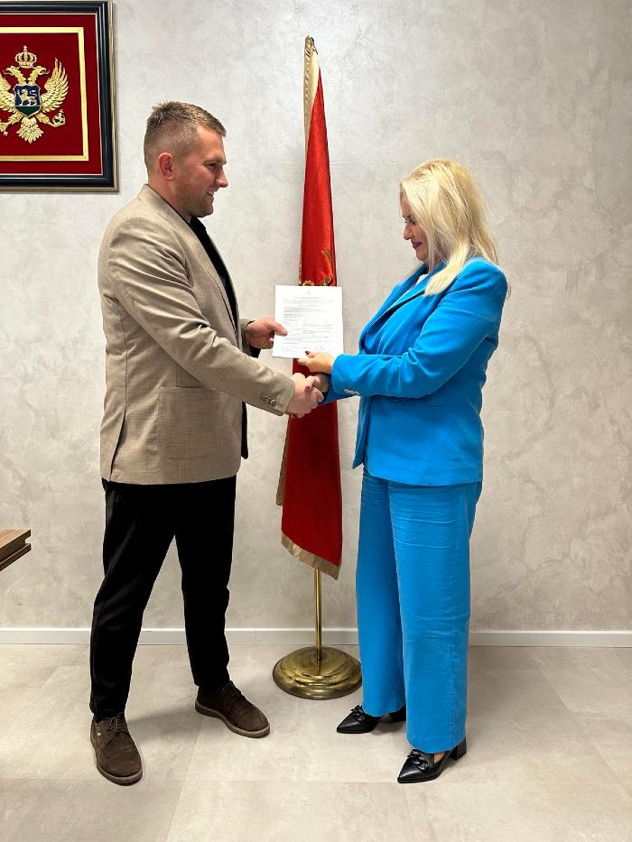 Dana 29.12.2025.godine, direktor Uprave za željeznice, gospodin Denis Lukač, uručio je Sertifikat o bezbjednosti za prevoz – dio A i B, izvršnoj direktorici Željezničkog prevoza Crne Gore Podgorica, gospođi Dragani Lukšić.